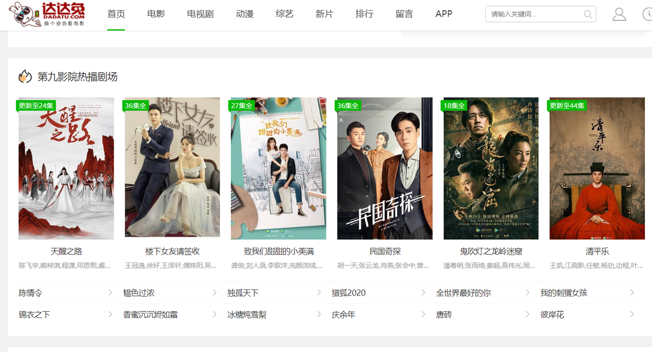 、叶问4、我和我的祖国、复仇者联盟4:终局之战、江湖喜剧人2、狱中豪杰等等,包含最新电视剧——鬼吹灯之龙岭迷窟、天醒之路、楼下女友请签收、致我们甜甜的小美满、清平乐,包含最新的动漫——火影忍者、名侦探柯南、斗罗大陆动漫、海贼王、一人之下,包含最新的综艺节目——王牌对王牌、青春有你、快乐大本营、创造营2020、向往的生活、偶像练习生。
