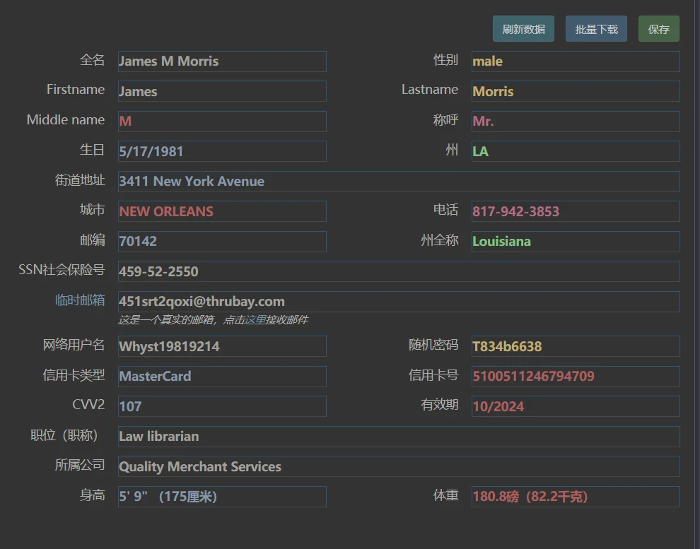 这个网站中自动生成美国人信息,如果你有需要的话,可以生成英国人、日本人和加拿大人的公民信息